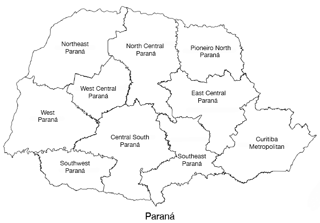 3 There are many studies on the economic, political, and cultural history of Paraná. Here, we cite only the best known texts, which include detailed bibliographies. For a wide-ranging view of the evolution of land occupancy in the state, see Balhana, Machado, and Westphalen (1969); for a condensed history of occupation and development, see Wachovicz (1988); on the evolution of economic cycles, see Padis (1980/2006); for an explanation of the interaction between politics and economics, see Magalhães Filho (2006); for the relationship between urbanization and industrialization, see Oliveira (2001); for the history of the production of food and urban supply, see Santos (1995); on the export of maté, coffee, and other products, see Westphalen (1998); on growth and regional inequalities, see Raiher (2012); for essays on the economies of Paraná and Brazil, see Dalla Costa, Gelinski Junior, and Lopes (2012).